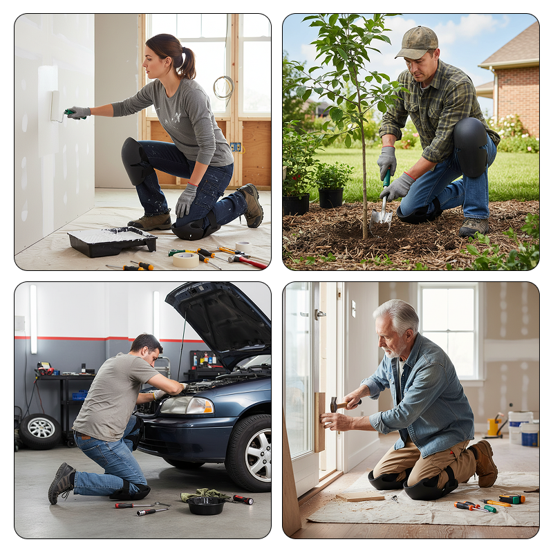 Soft gel and EVA foam create a gentle layer. Kneeling feels easier, reducing tiredness after a job.