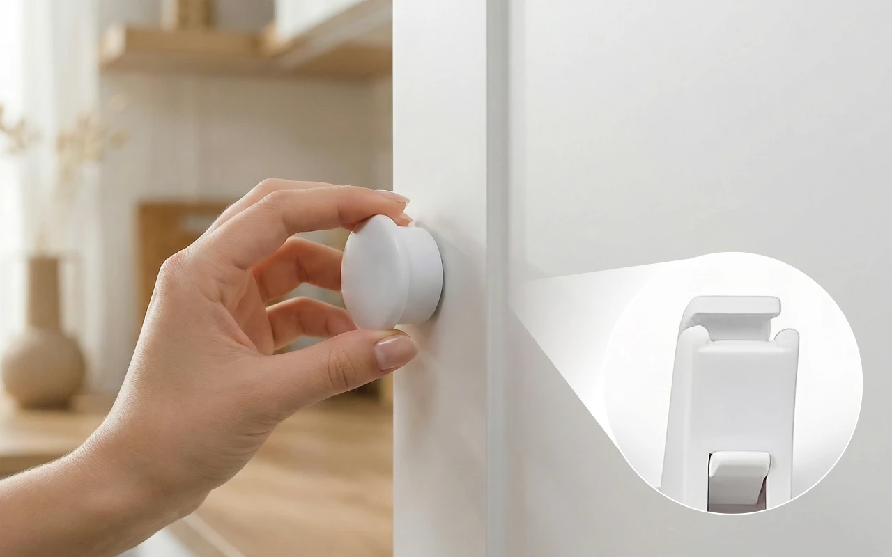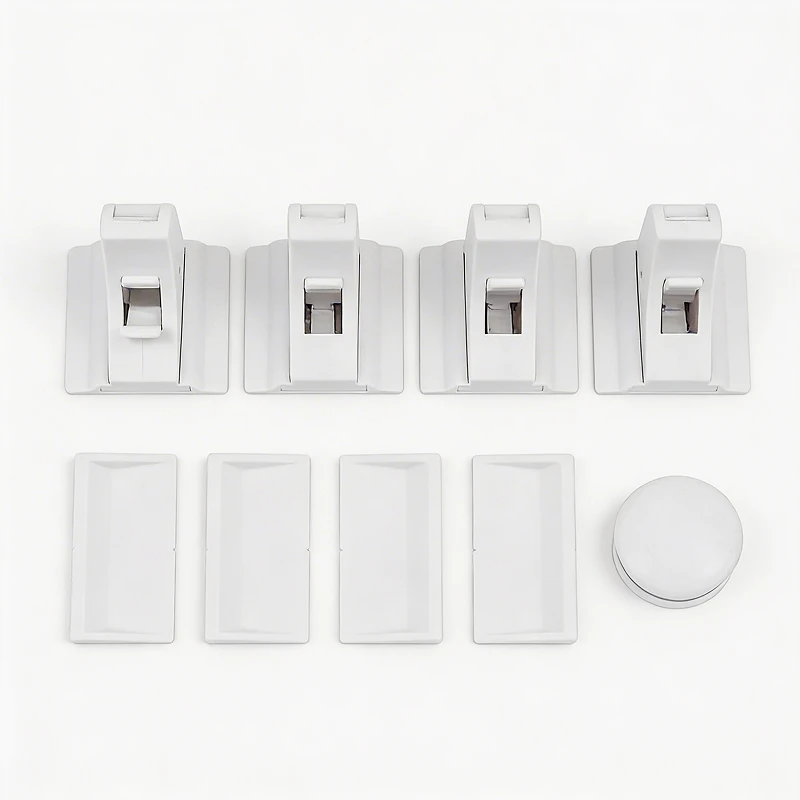 Tiny hands explore quickly, and accidents happen in a flash. Ortorex magnetic safety locks keep your drawers and cabinets sealed. No tools or drilling are needed for installation anywhere in the home. The clever invisible design keeps rooms tidy and beautiful. Every latch gives you peace of mind around curious toddlers.