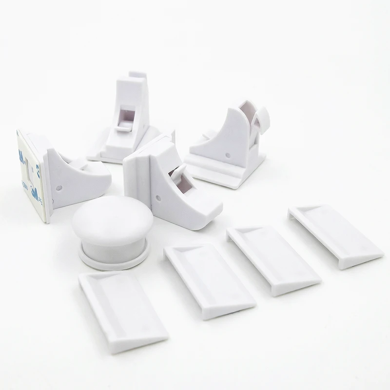 I worried about my crawler finding sharp tools in the garage. These locks fit those cabinets too. Strong magnet, simple key, and very solid closure.