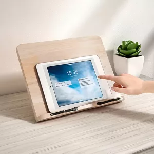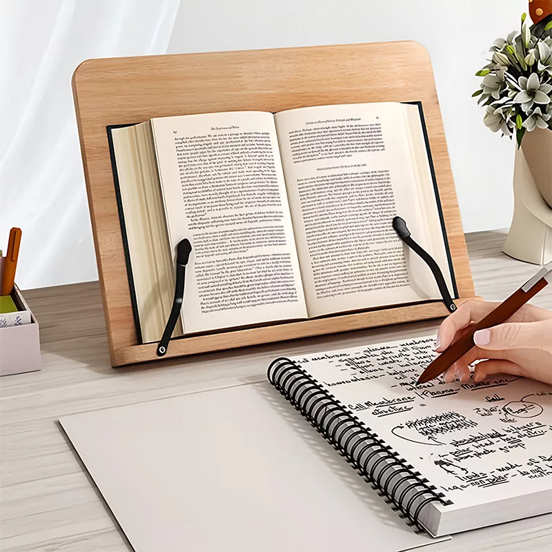This wooden stand has been a game-changer for my study sessions. The adjustable angles really help my posture.