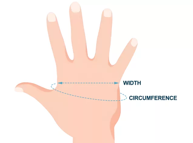 - 2. Wrap the measuring tape around your palm, just below the knuckles.