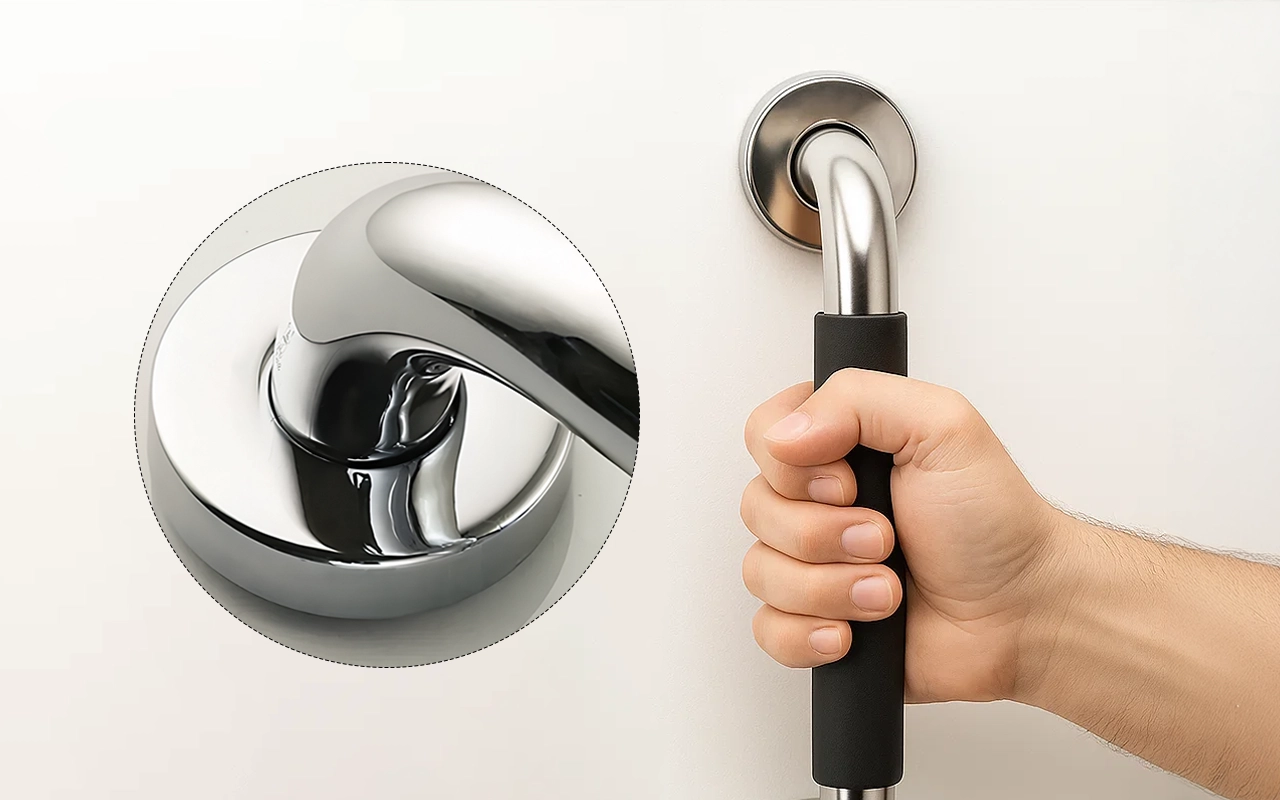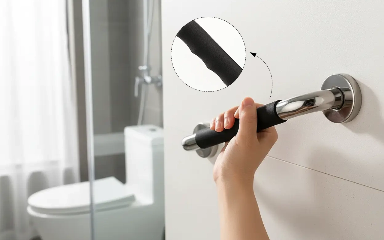 The silicone section keeps hands steady even when wet. Every touch feels secure and comfortable for daily support.