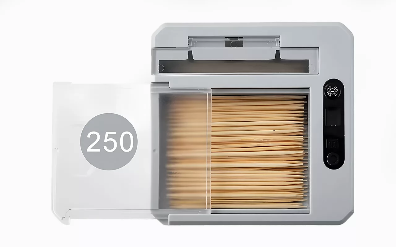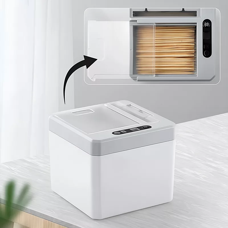 Smart sensor detects movement for quick, fuss-free dispensing. The 130° flip cover protects fingers and keeps toothpicks tidy.