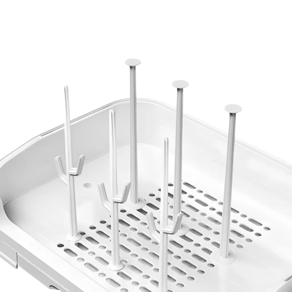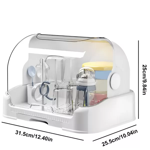 Make cleanup easier with the Ortorex drying rack for baby bottles. The lid shields items from dust and kitchen splashes. Multiple pegs allow air circulation for faster drying.