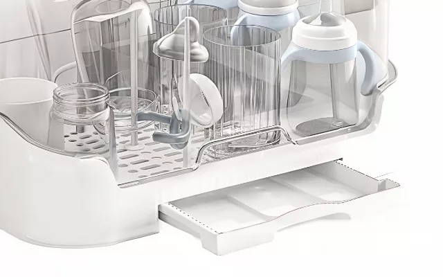 The drying tray drains water perfectly, keeping everything clean. I’m very pleased with this buy for my baby stuff.