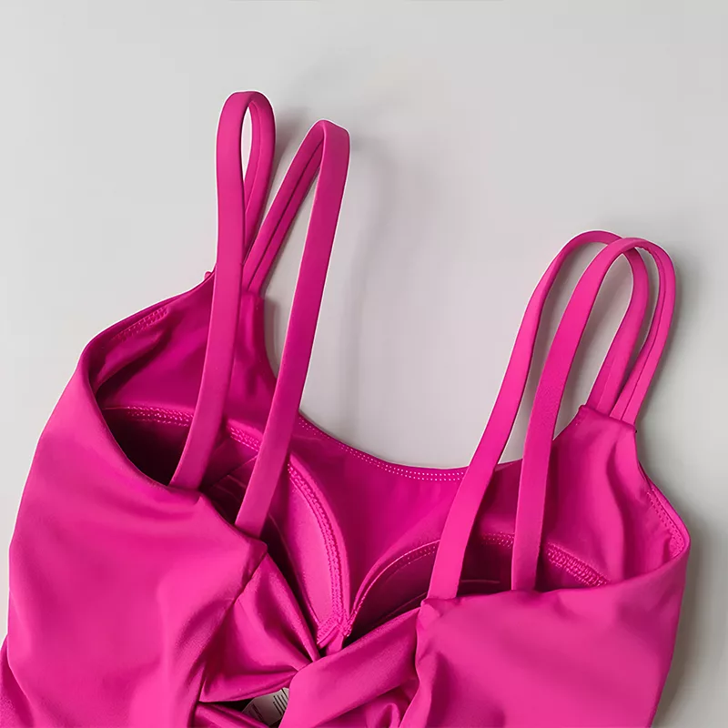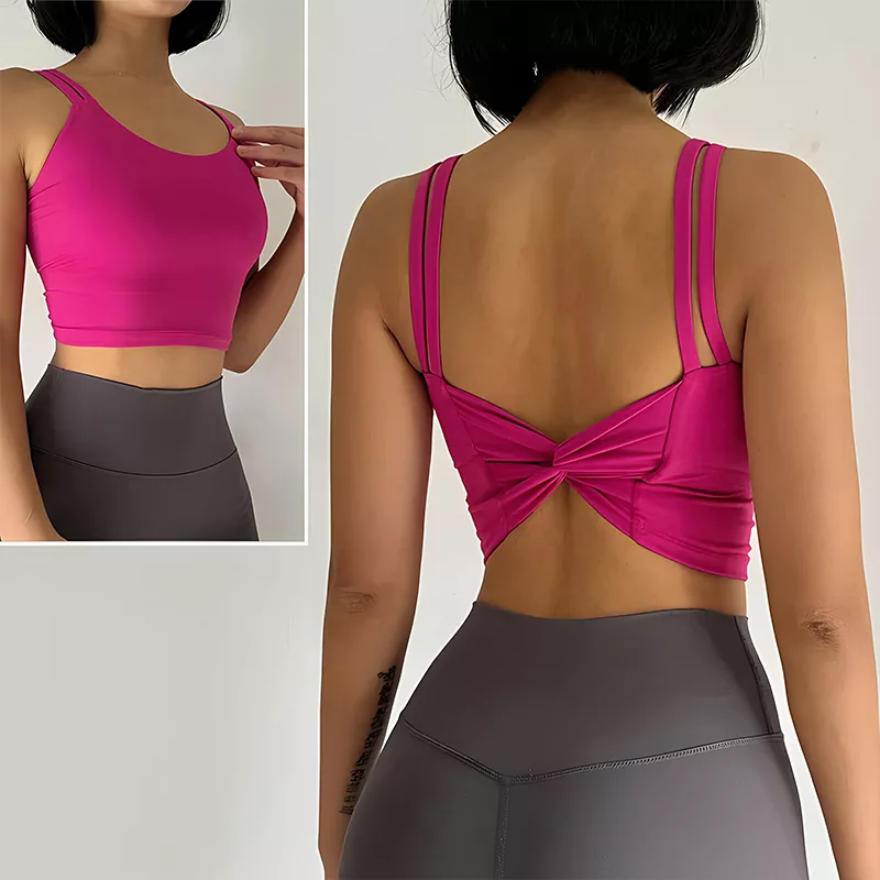 Double straps and full cups hold everything in place, giving you complete confidence. Enjoy steady support, whether you are stretching or sprinting.