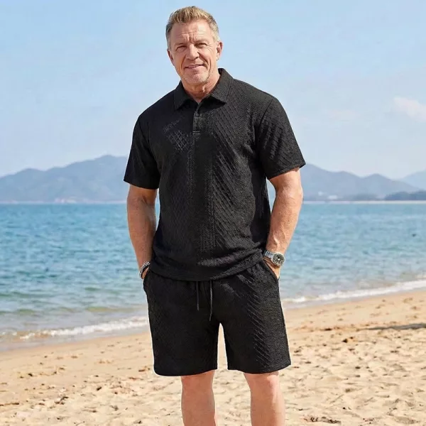 Jacquard texture and lapel collar create a polished look. Suitable for gatherings or seaside, you appear sharp without effort.