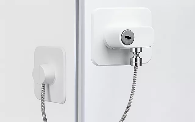 Our safety lock stays firmly attached to the surface, resisting pulls and tugs. Installation takes seconds with no tools required.