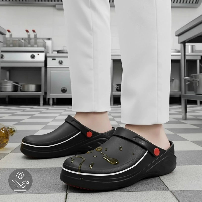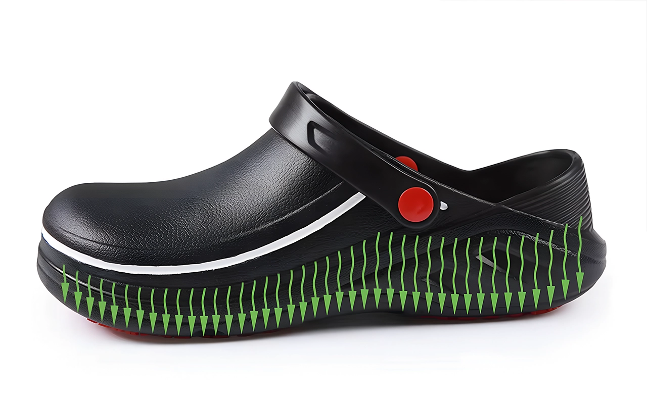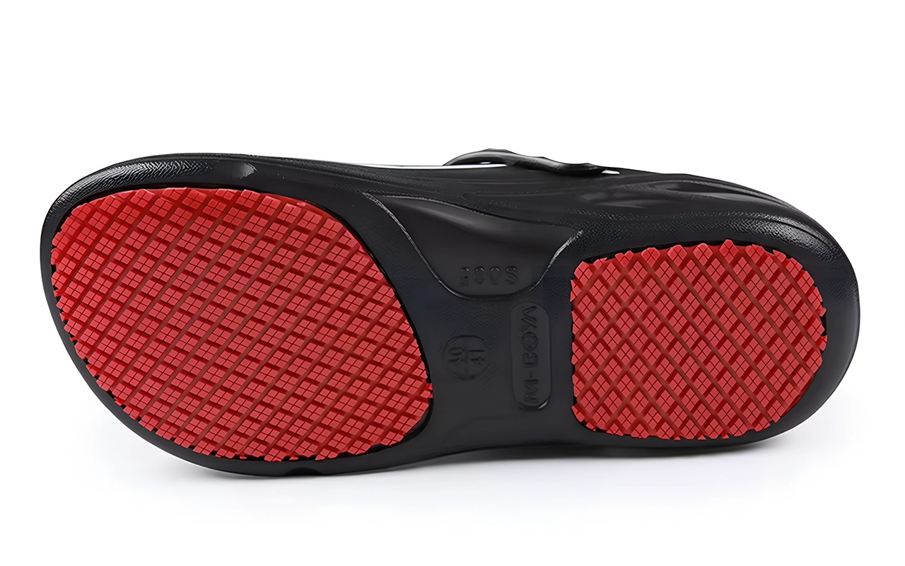 Wet floors and oily spots are not a problem now. The unique sole pattern keeps every step steady and stable.