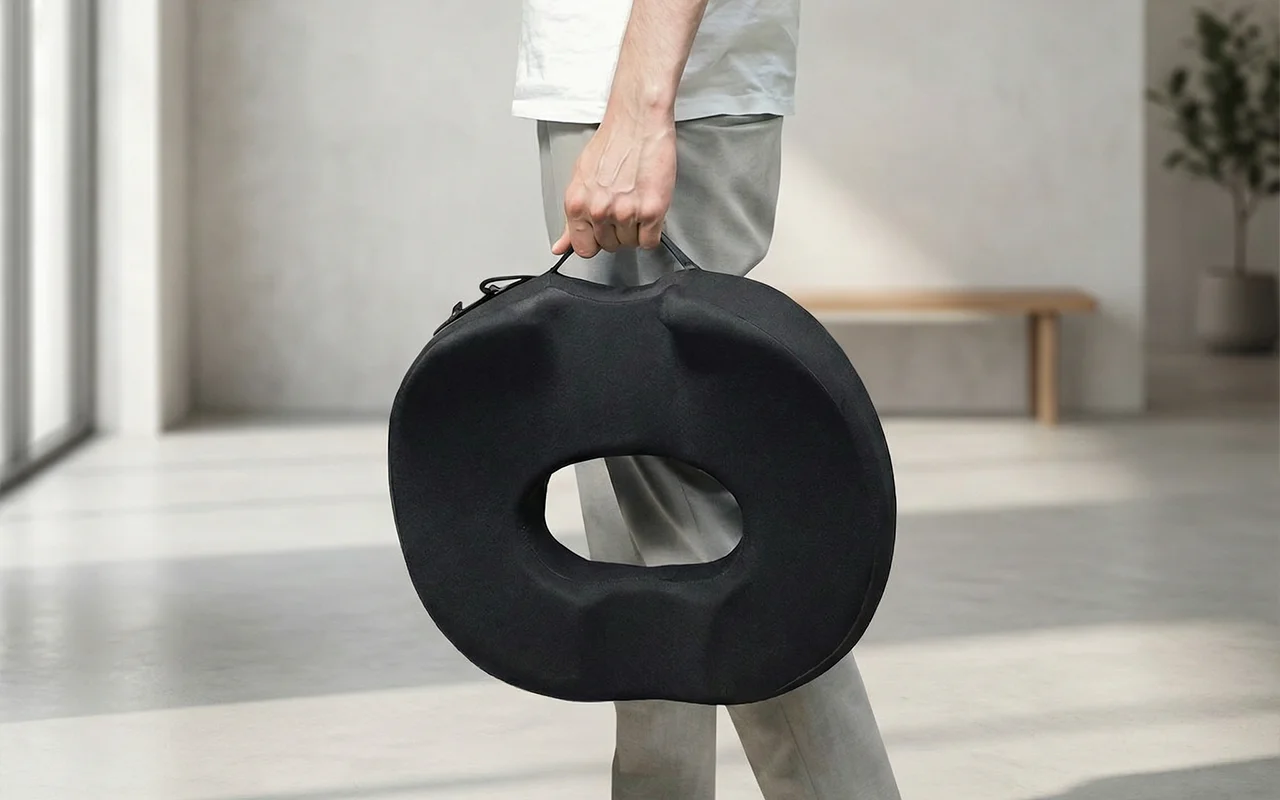 Easy-carry handle and hook let you bring comfort anywhere. Use Ortorex seat cushion at home, in the office or while travelling.