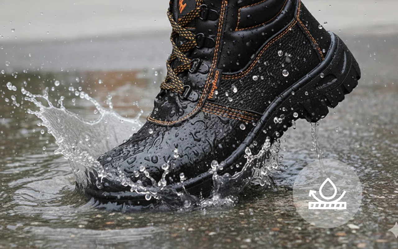 They kept my feet dry during heavy rain, which is rare for work shoes. Easy to clean off mud later. Fit was just right, too.