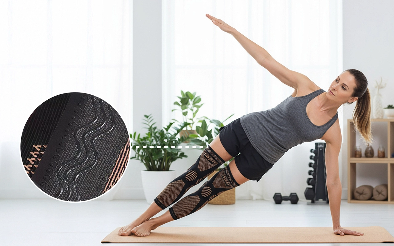 Triple anti-slip silicone bands stop rolling or sliding down legs. Move confidently while exercising, working, or relaxing at home.