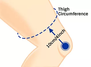- 1. Bend your leg at a 30° angle and measure your thigh's circumference 4’’ (10 cm) above your knee cap.