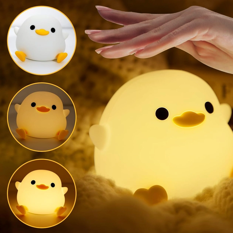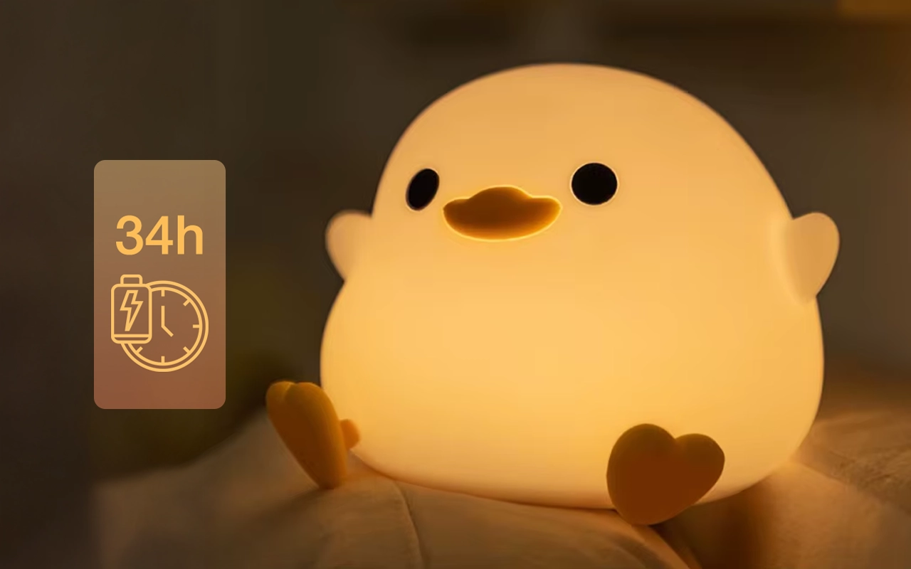We use the duck lamp during late-night diaper changes. Gentle light lets me see without waking the baby fully, and the battery easily lasts all week.