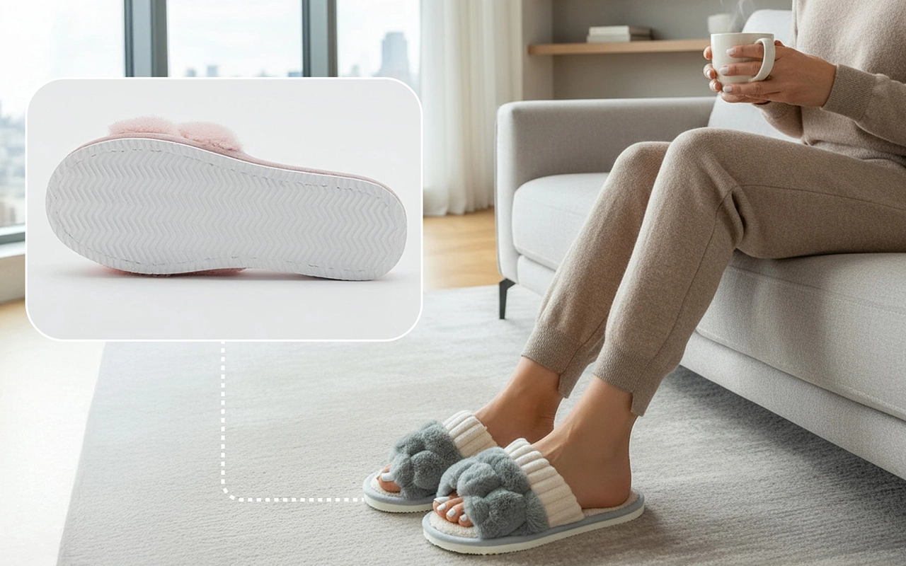 Super easy to slip on and off, plus the plush inside feels wonderful. The non-slip bottom keeps me steady.