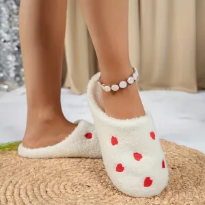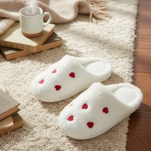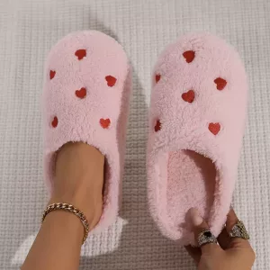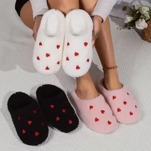Sweet hearts give every outfit a cheerful boost. These slippers make relaxing indoors feel special and fun.