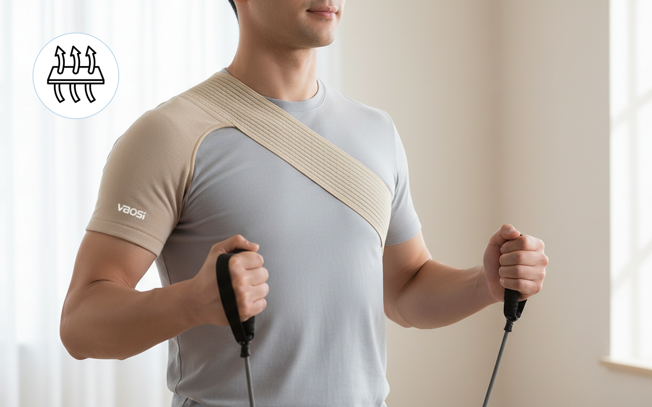 I started wearing this sleeve during home workouts. It hugs my shoulder just right, gives me confidence to lift light weights again, and stays cool the whole time.