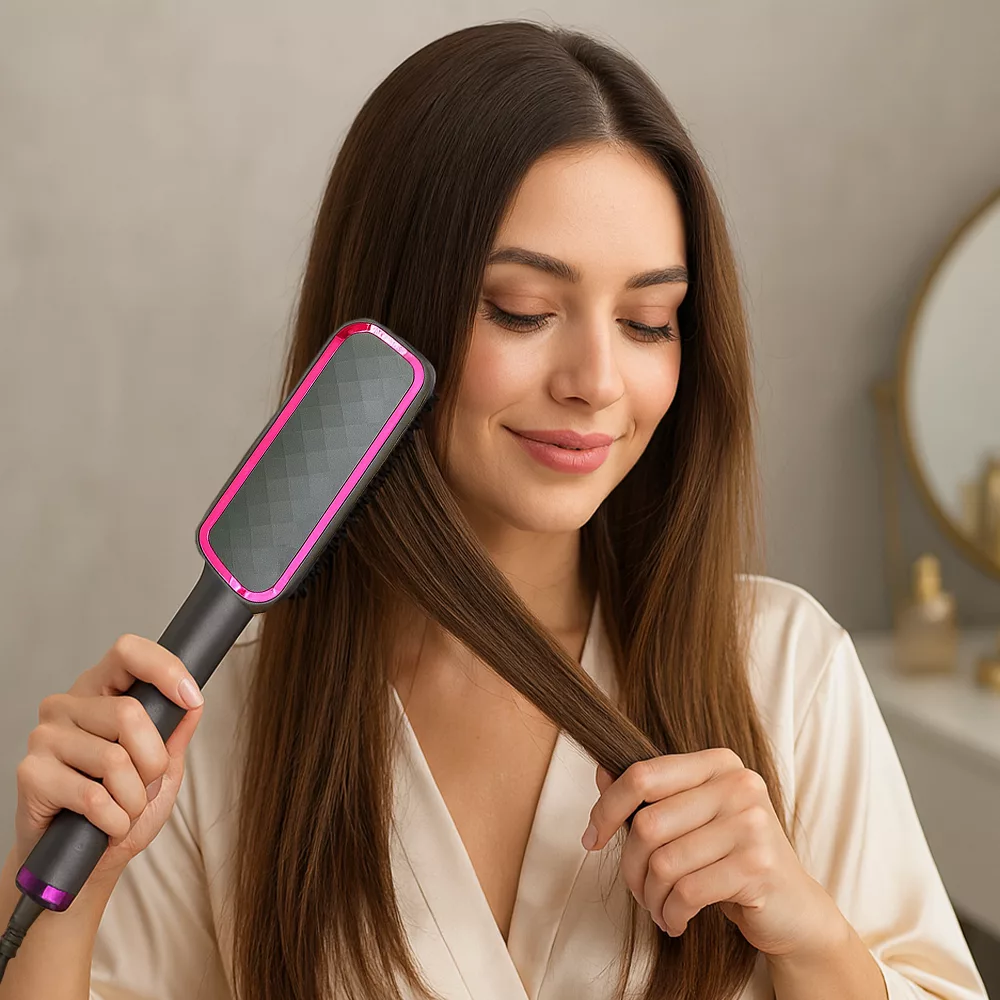 Honestly blown away by this hot comb! It heats up so fast and leaves my hair silky smooth every morning. No frizz, just shiny straight hair.