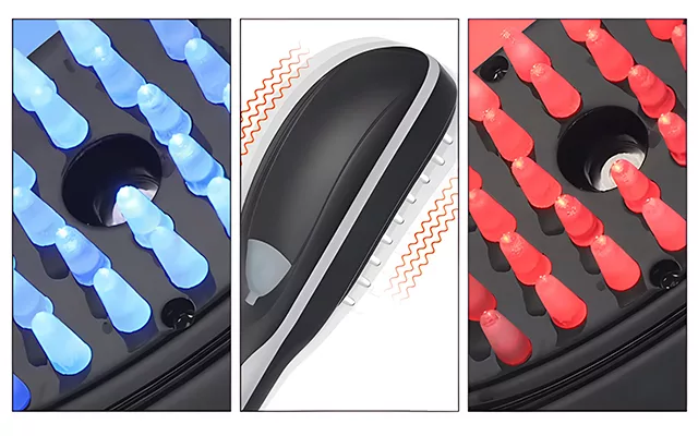 Our massager stimulates the scalp, increasing blood flow and cellular activity. This boosts the delivery of vital nutrients to the roots, which is essential for their strengthening. Through consistent use, the comb effectively fights hair loss.