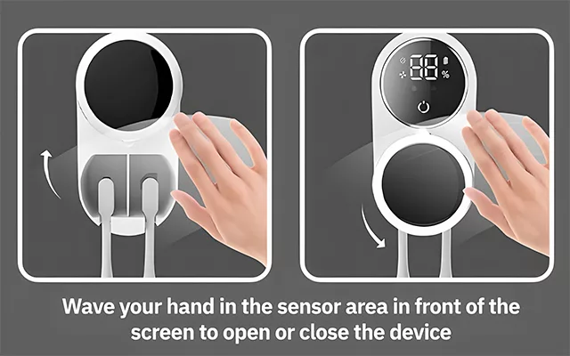 The Ortorex toothbrush steriliser opens and closes when motion is detected.