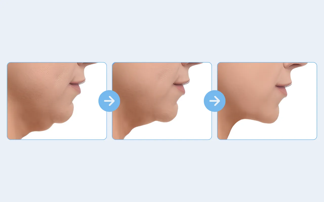 I notice my double chin looks smaller when I use this regularly. Fits well and feels super comfortable around my face.