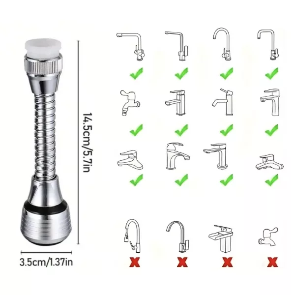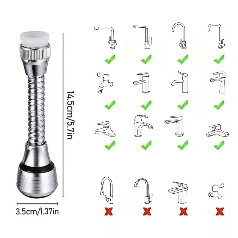 The Ortorex extender rotates 360 degrees, allowing you to direct water flow as you please. It will save you time when doing dishes or cleaning the sink.
