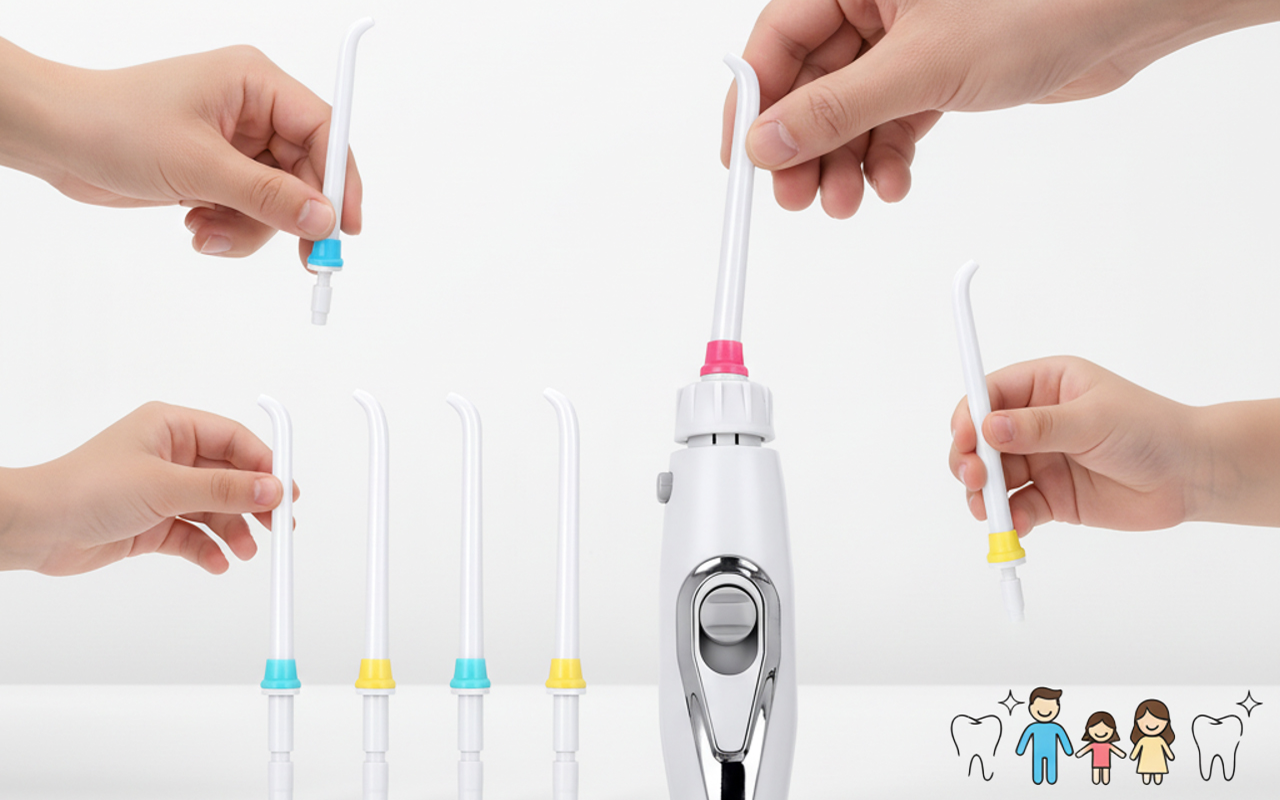 Each nozzle features a different colour for family use. Every person gets a clean and safe experience each time.
