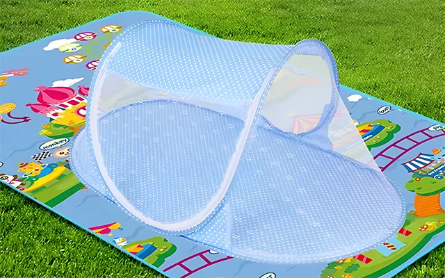 Our baby tent keeps insects out while allowing fresh air inside. This prevents overheating and can contribute to restful sleep.