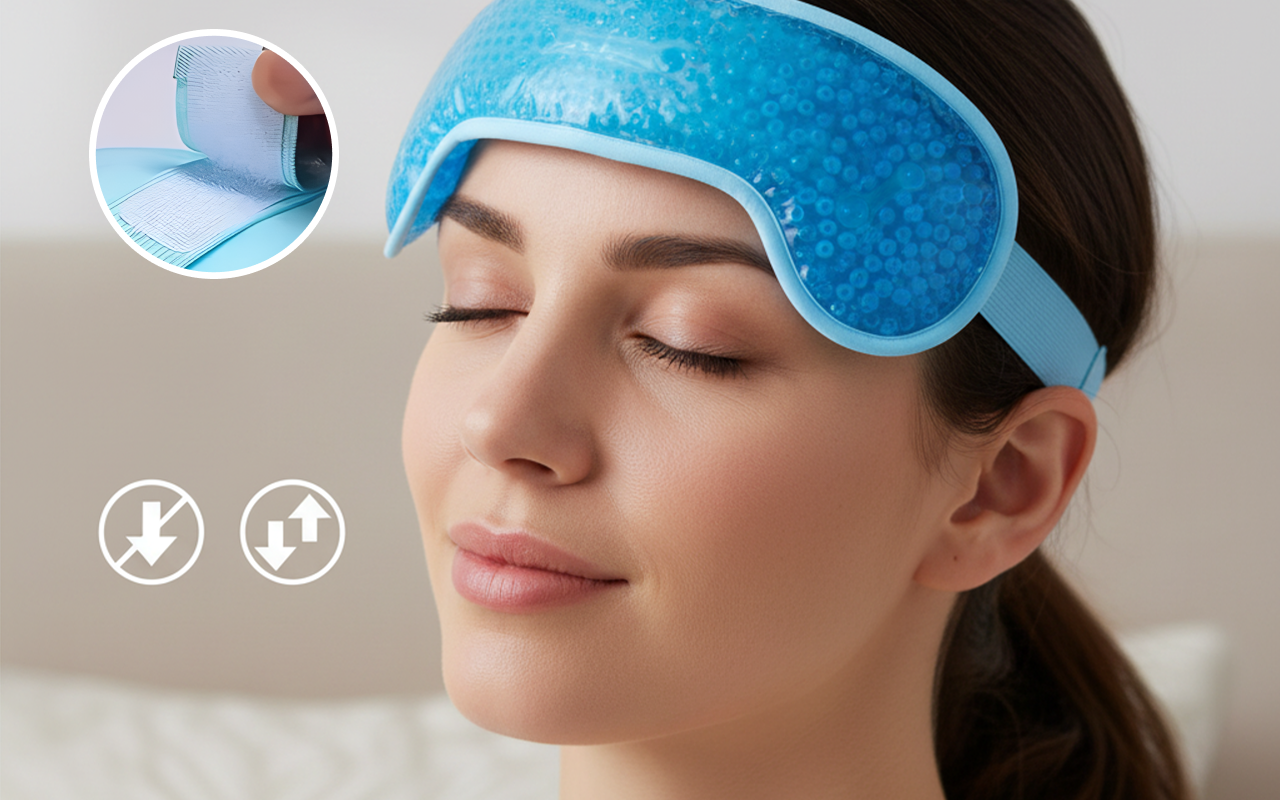 I was surprised by how well this cold wrap fits my head. The strap never slips, and it cools down my temples right away.