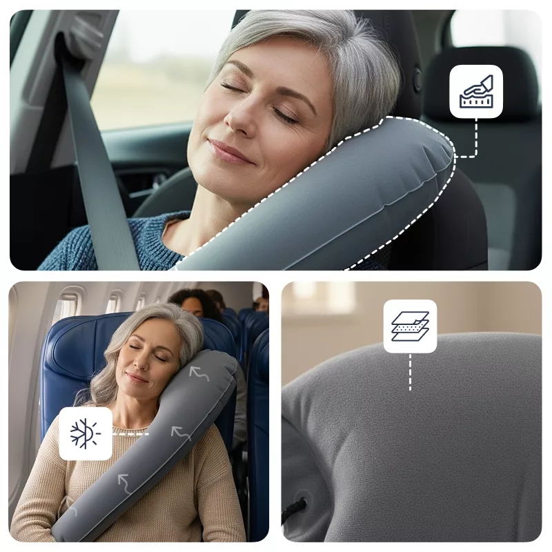 Rest easy on any seat with Ortorex’s unique pillow shape. Pressure on shoulders and neck disappears instantly, helping you drift off quickly.