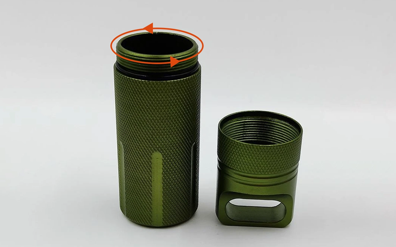 The case feels solid and the screw top always stays shut. I even use it for keeping mints sometimes. It looks really cool on my keys.
