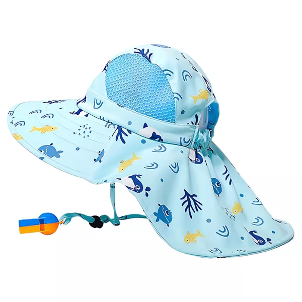 A must-have for every parent! The hat fits great, keeps sunburns away, and my child laughs with the whistle.