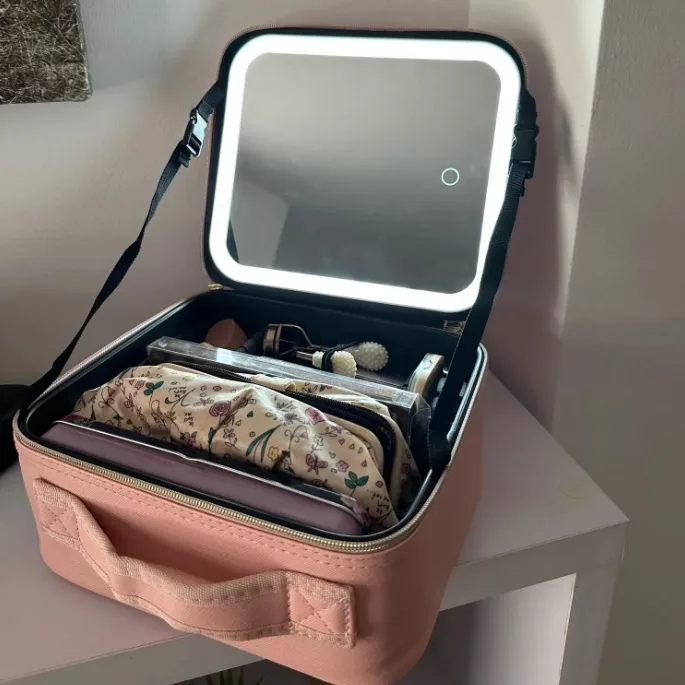 Absolutely adore my bag! It’s super handy with the lighted mirror when traveling. My makeup stuff stays tidy in their own spots, no mess!