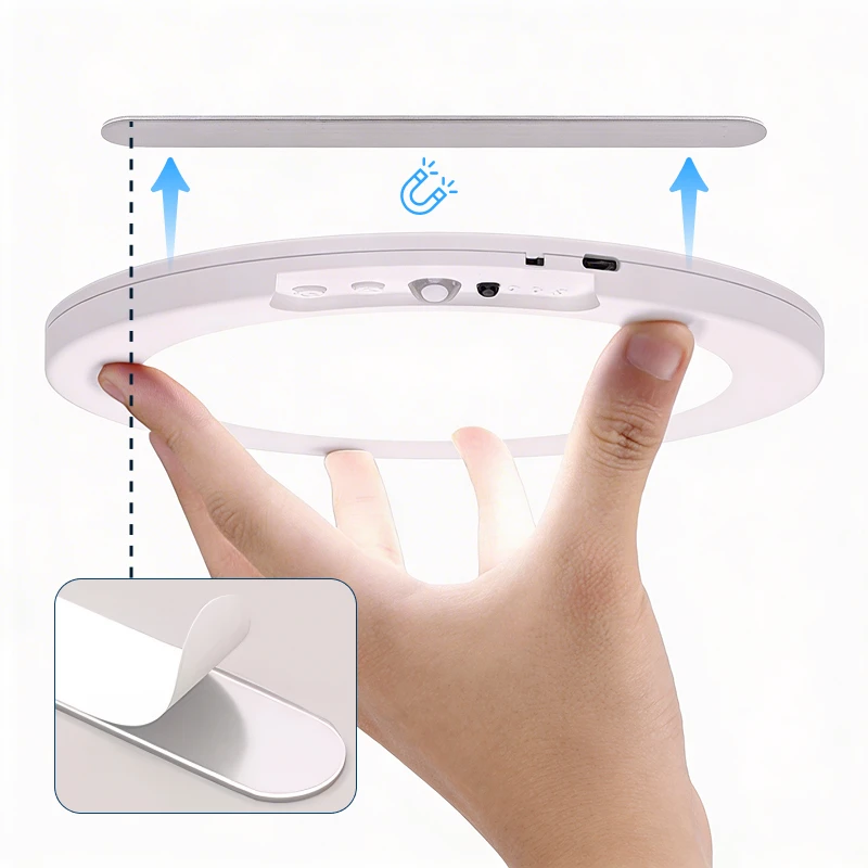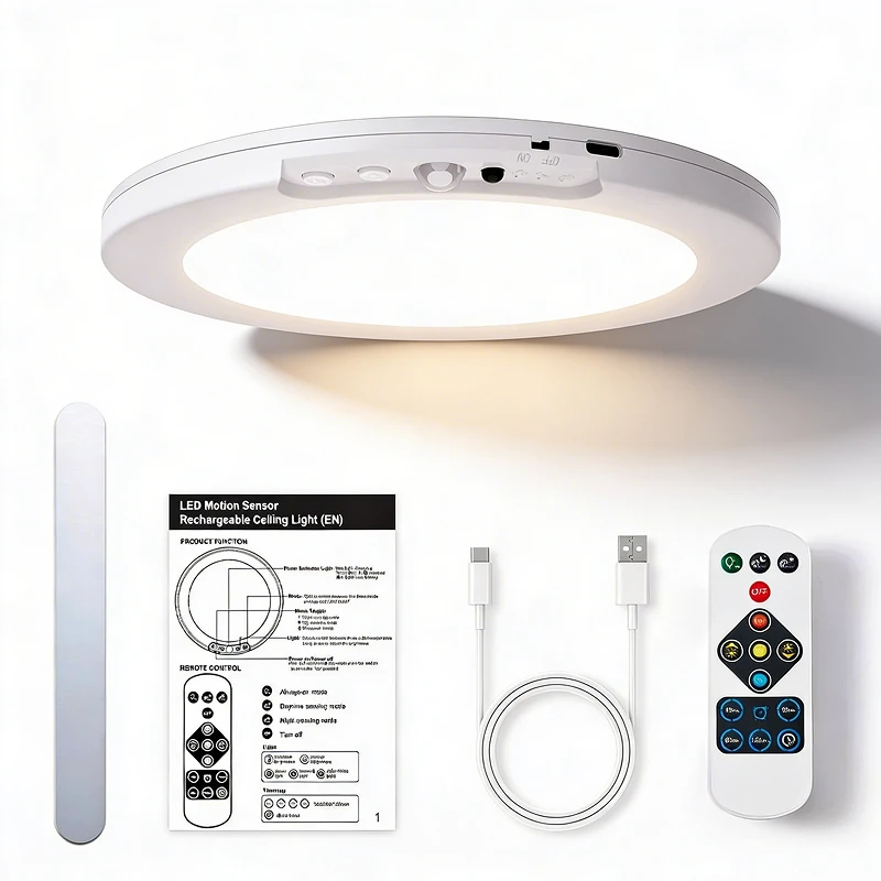 Recharge Ortorex ceiling light quickly with USB Type-C cable. One full charge delivers weeks of dependable illumination.