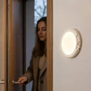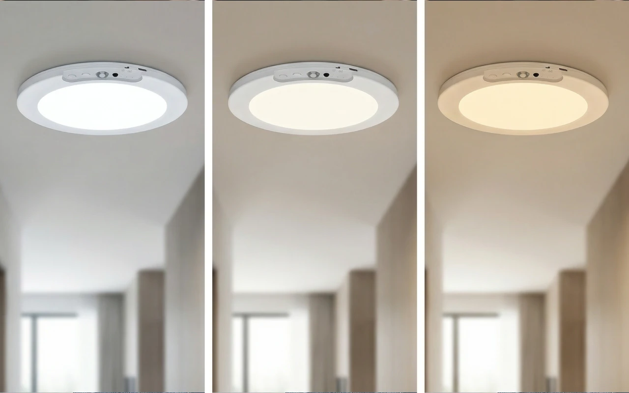 Never struggle in dark corners again using the Ortorex ceiling light. This clever fixture senses movement and turns on automatically. Change colour warmth for comfort using the included remote.