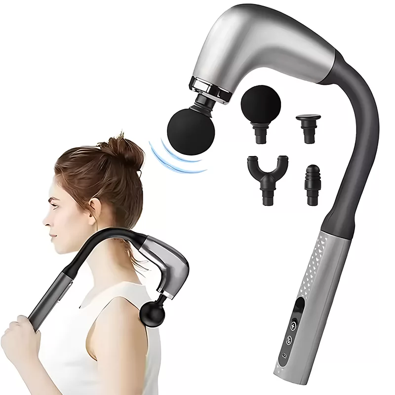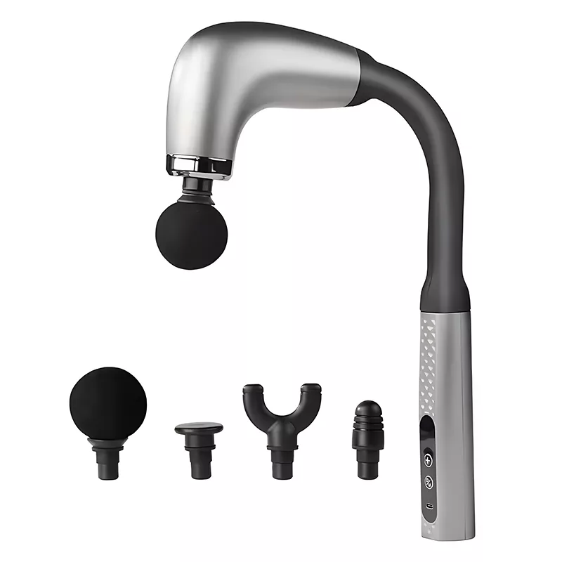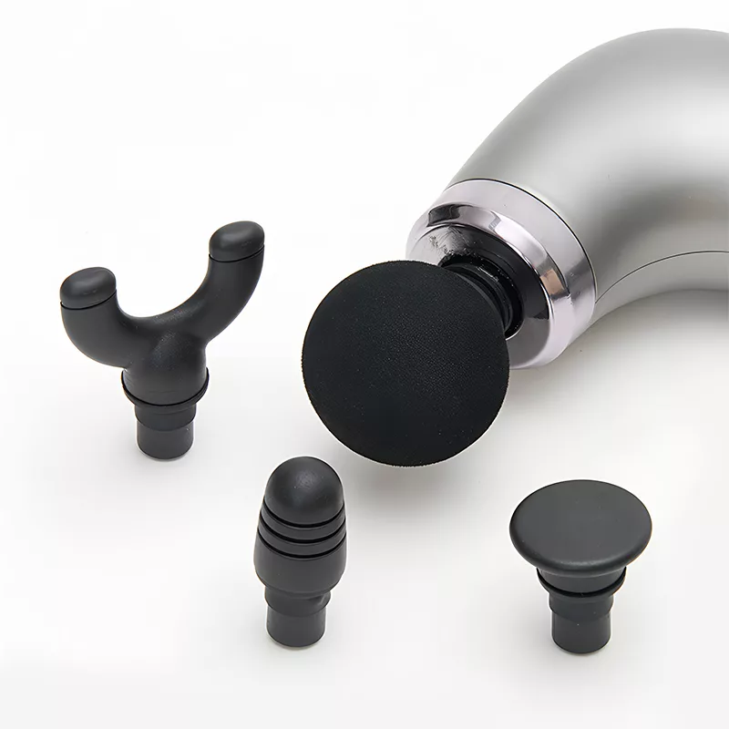 This handheld massager comes with multiple attachments. Each of them is designed to target different muscle groups.