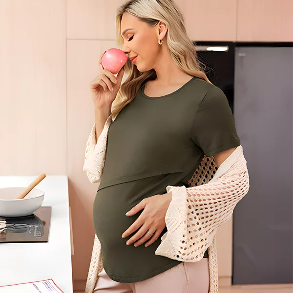 This maternity T-shirt resists wear and tear, ensuring long-lasting use. It maintains softness and shape even after multiple washes.