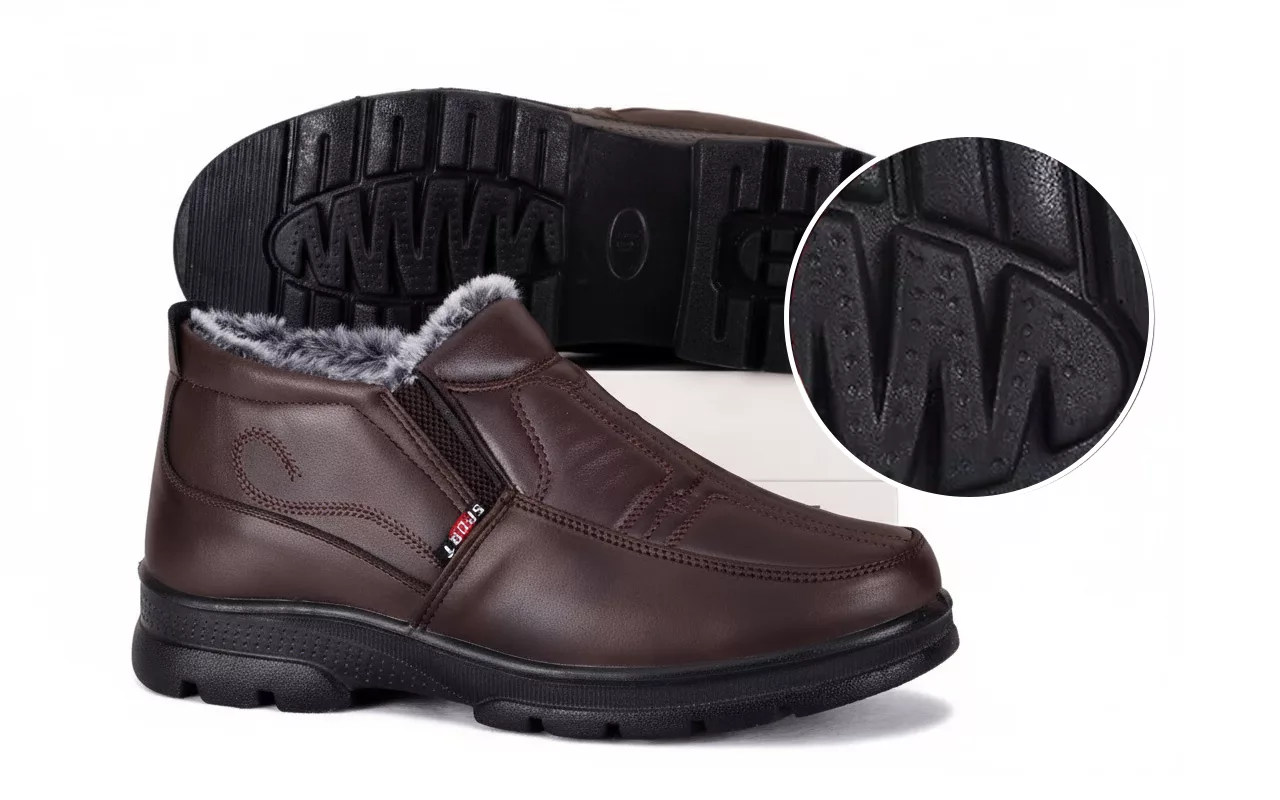 Slippery surfaces lose their danger in snowy conditions. The sole grips firmly, making winter walks steady.