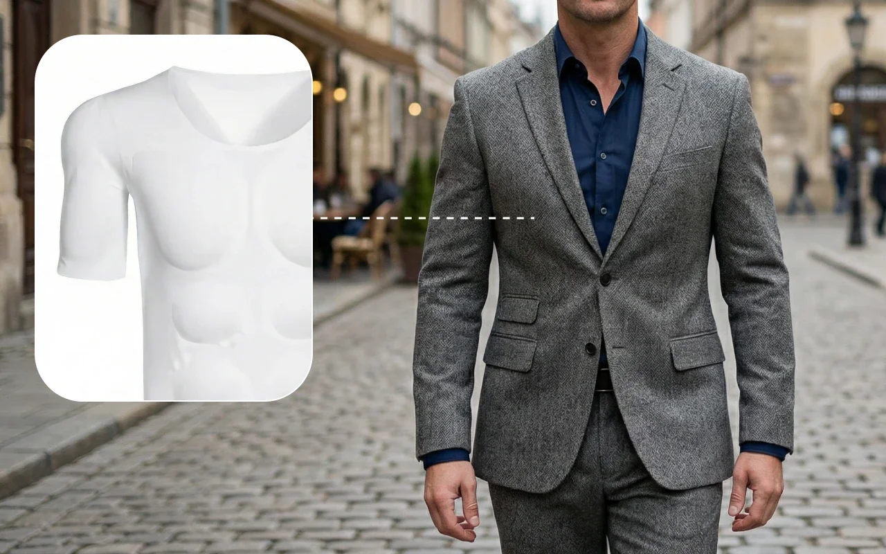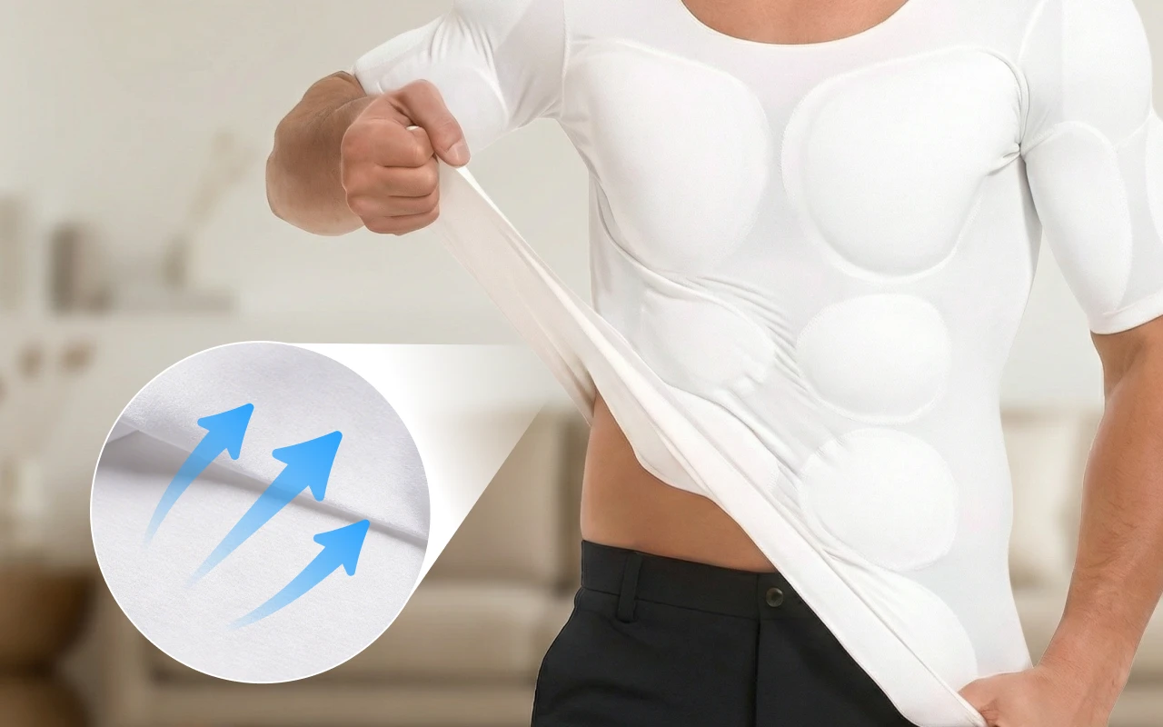 Wearing this muscle shirt under polos makes a huge difference. The padding looks natural and it’s great that I can move them around for the best look.