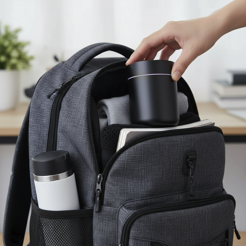 Ortorex aroma diffuser fits perfectly in any space. Bring fresh, clean air to bedrooms, cars, or offices. Enjoy the calming effect of a gentle mist and soothing lights.