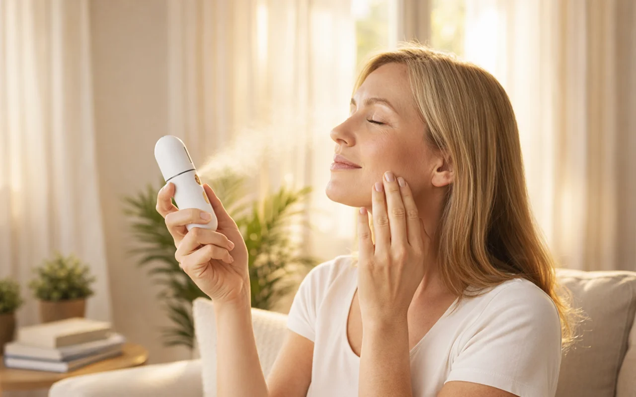 I was worried my foundation would smudge, but the fine mist never messes it up. My face feels fresh even late at night.