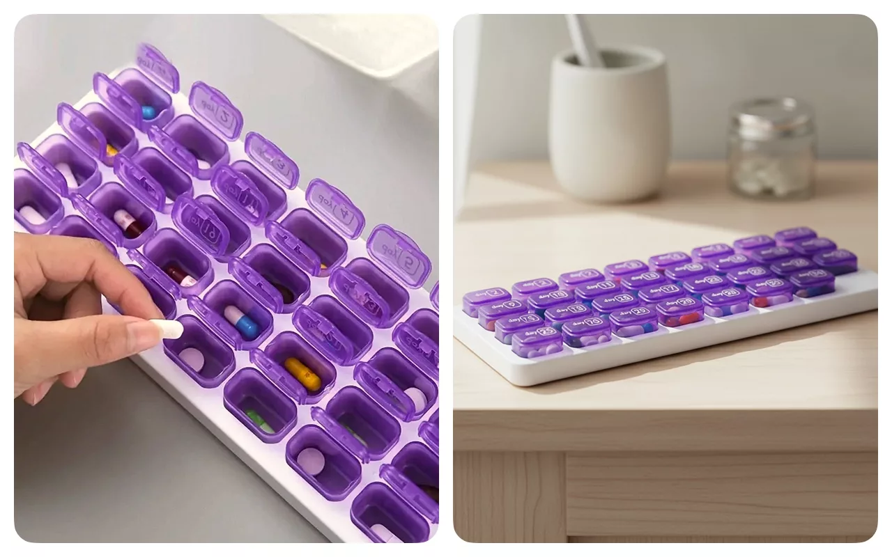 Take control of daily doses using simple numbered pods. Ortorex makes storing vitamins and medicine easy for everyone. Plan ahead for thirty-one days without confusion or stress. Each pod keeps everything visible, safe, and secure throughout the month.