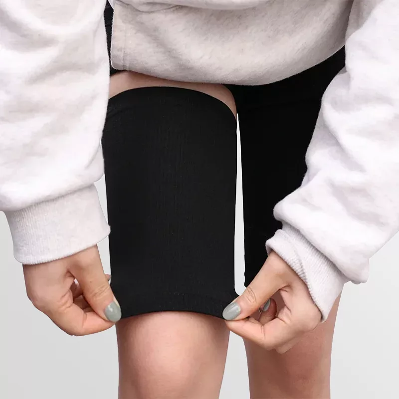 I wear these sleeves every day under my jeans and barely notice them. They make my thighs look slimmer and don’t slide down at all!