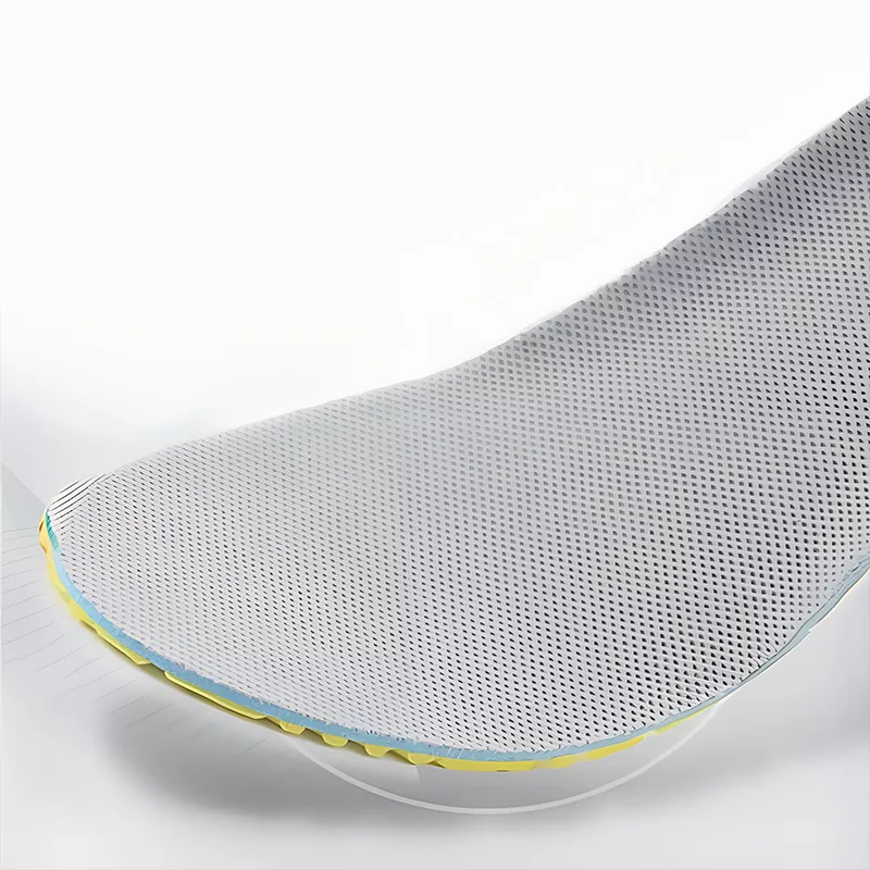 The material has a unique structure that allows air to flow freely. This helps reduce sweating and foot odour.