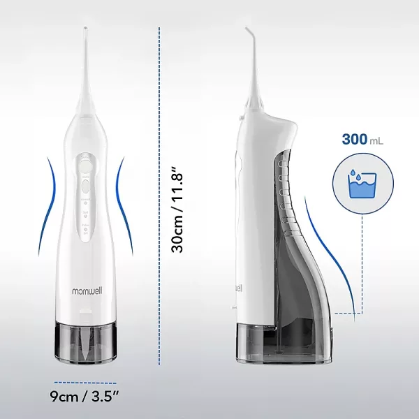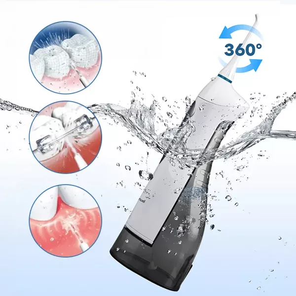 Our irrigator includes three nozzles for regular cleaning and a tongue scraper.