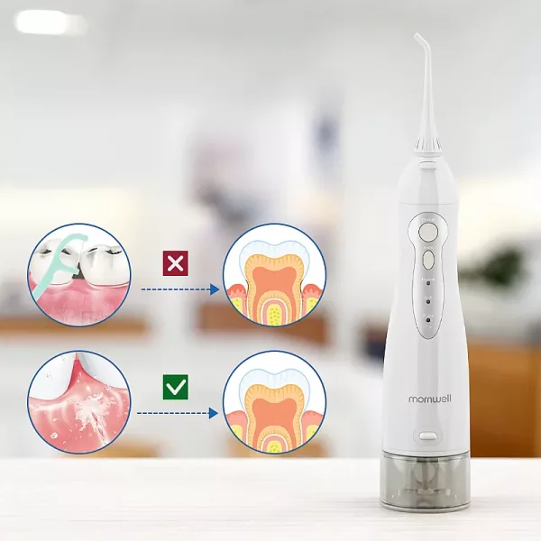 The Ortorex Irrigator makes cleaning teeth more effective. The water pressure reaches every corner that regular floss and brush can’t reach. This reduces the overall amount of bacteria and plaque between teeth. It can instantly give fresh breath. Moreover, our oral irrigator is suitable for braces, implants, crowns, and bridges and is cheaper than dental visits.
