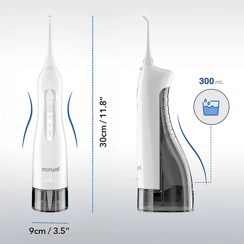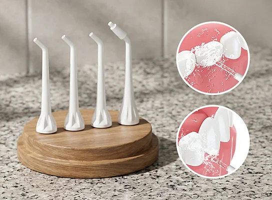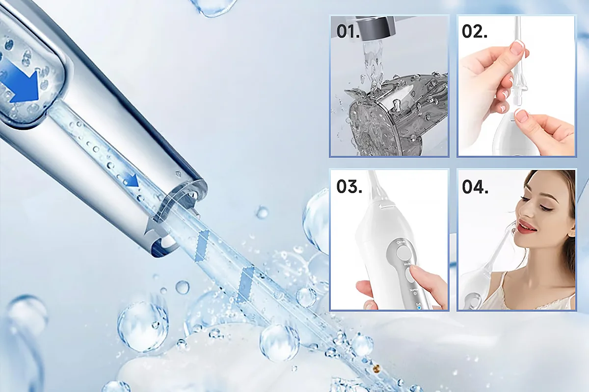 Our irrigator includes three nozzles for regular cleaning and a tongue scraper.
