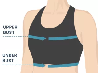 - 2. To find the upper bust measurement, wrap the measuring tape around your torso, right under your armpits and over the top of your bust.