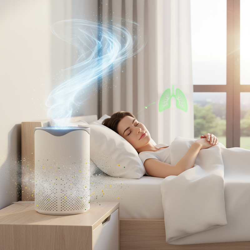The small purifier fits perfectly on my desk and makes my room feel super fresh. I love how every night feels peaceful and clean.