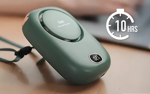 I wore this mini fan around my neck for a long hike, and it kept me cool the entire way. The battery lasted all afternoon, super happy with it!